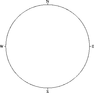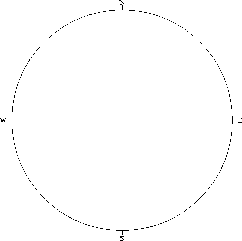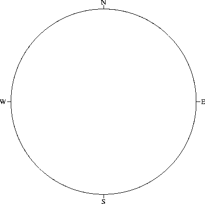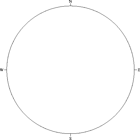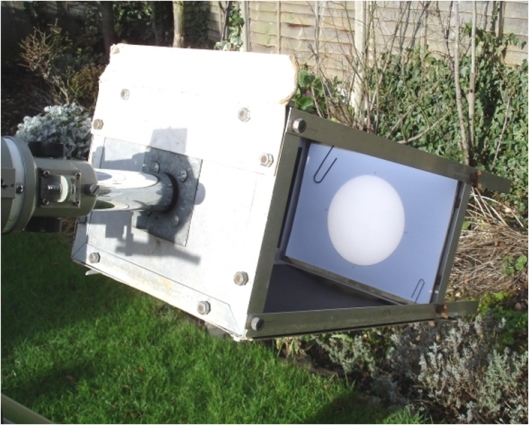 You must be very careful when observing the Sun. Never look directly at the Sun with the naked eye or with any optical instrument. The method I use is to project an image of the Sun using an 80mm refracting telescope on an equatorial mounting. A projection box is attached to the eyepiece holder as shown below. A suitable eyepiece is used to project the whole of the solar disk to the far end of the projection box. Do not use cemented eyepieces as the heat of the Sun will damage them. Details of how to construct a projection box are available in a seperate document (PDF). A sheet of paper with a blank disk is placed at the far end of the box - such blank disks can be found towards the bottom of this page. The north, east, south and west points are marked on these blank disks. For northern hemisphere observers, the N point must be above the S point and the E point must be to the right. For southern hemisphere observers, the opposite is required i.e. the N point must be below the S point and the E point must be to the left. I place a second sheet of paper marked with a number of horizontal and vertical lines behind the blank disk - such backing sheets can be found towards the bottom of this page. One of these horizontal lines is aligned along the blank disk east-west direction to aid in orientating the projection box. The other lines are useful when making the drawing. The steps to set up the telescope and make a disk drawing are: (a) Check that the telescope mounting is level and correctly aligned; place an eyepiece in its holder and remove telescope cap. (b) Use the shadow of the Sun on the top of the projection box to ensure an image of the Sun appears on your sheet of paper at the far end of box. (c) Focus the Sun and ensure it fits your circle. If it does not, the distance between the eyepiece and your sheet of paper will need adjusting. (d) With the telescope drive switched off, place a small sunspot on one of the east-west lines on the sheet behind the blank disk and let it drift. If the spot moves away from the line rotate the projection box. Once the spot moves along the east-west line note the time. (e) Switch on the telescope drive and place the Sun within your disk circle. You are now ready to draw what you see. I mark the location of a spot in each group first and check they are correctly located within the disk. Then all the other spots are drawn including the outline of penumbral spots. Any faculae present are drawn in yellow. (f) The date and time (in UT) are noted on the drawing as well as the observing conditions. Analysis of the drawing should, if possible, be made later the same day. Such measurements as sunspot number and area can be made.